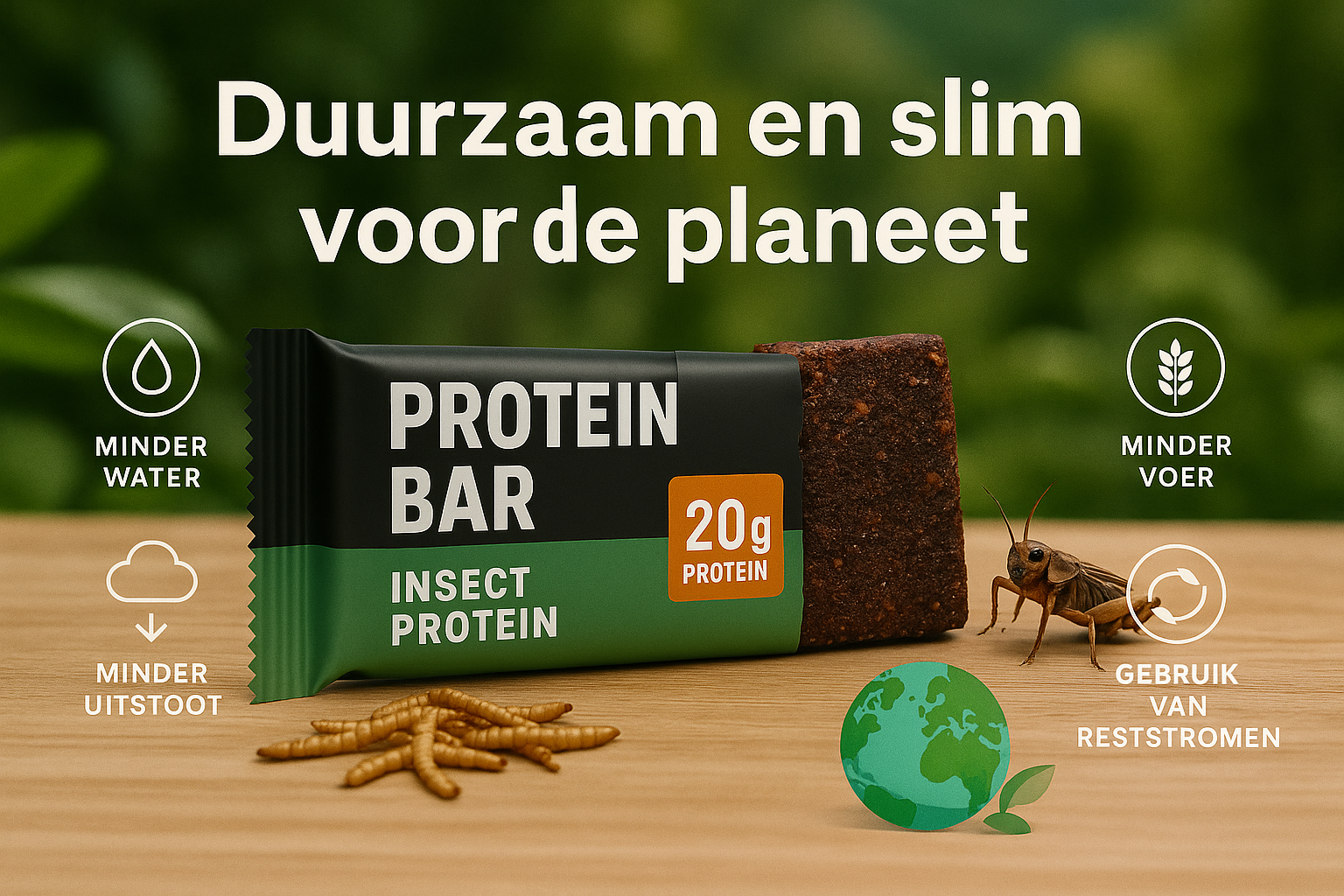 De impact van onze voedselkeuzes op het milieu is enorm. Insectenkweek is daarin een revolutionair alternatief. Waar de productie van rundvlees 10.000 liter water per kilo vlees kost, hebben insecten gemiddeld slechts een fractie daarvan nodig. Daarnaast is er vier keer minder voer nodig en stoten insecten veel minder broeikasgassen uit. Ook kunnen ze gekweekt worden op reststromen uit de landbouw, waardoor er minder verspilling is. Dit maakt insecten niet alleen een efficiënte eiwitbron, maar ook een slimme schakel in een circulaire voedselketen. Door te kiezen voor insectenproteïne draag je dus direct bij aan een lagere ecologische voetafdruk en een duurzamere toekomst, zonder in te leveren op voedingskwaliteit. Wat insecten nog unieker maakt, is de schaalbaarheid van de kweek. In tegenstelling tot traditionele veehouderij hebben insecten nauwelijks ruimte nodig: ze groeien in verticale boerderijen, vaak midden in de stad. Dit vermindert transport, maakt lokale productie mogelijk en zorgt voor een kortere keten van boer naar bord. Bovendien vergen insecten geen gebruik van antibiotica, waardoor er geen risico is op antibioticaresistentie, een probleem dat in de vleesindustrie wél groot is. Door hun efficiëntie, lage milieu-impact en flexibiliteit worden insecten wereldwijd gezien als een van de meest veelbelovende oplossingen voor de groeiende vraag naar voedsel in de toekomst.